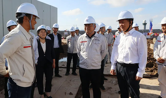 10月16日,集團黨委書記、董事長董毅與中國能建江蘇院黨委副書記、總經理查申森一行前往興悅420MW項目現場開展聯合安全檢查,并就推進項目建設事宜座談交流。